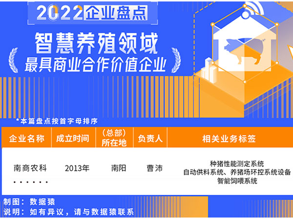 南商農(nóng)科入選《2022智慧養(yǎng)殖領(lǐng)域最具商業(yè)合作價(jià)值企業(yè)盤(pán)點(diǎn)》