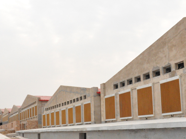 濕簾降溫系統(tǒng)是一種非常有效的密閉空間的降溫方法。到夏季就會開啟濕簾和風(fēng)機(jī),關(guān)閉其他通風(fēng)孔和窗戶,形成密閉負(fù)壓的環(huán)境。濕簾降溫系統(tǒng)可以有效的降低夏季豬舍的溫度,減少豬群特別是種豬群的熱應(yīng)激。